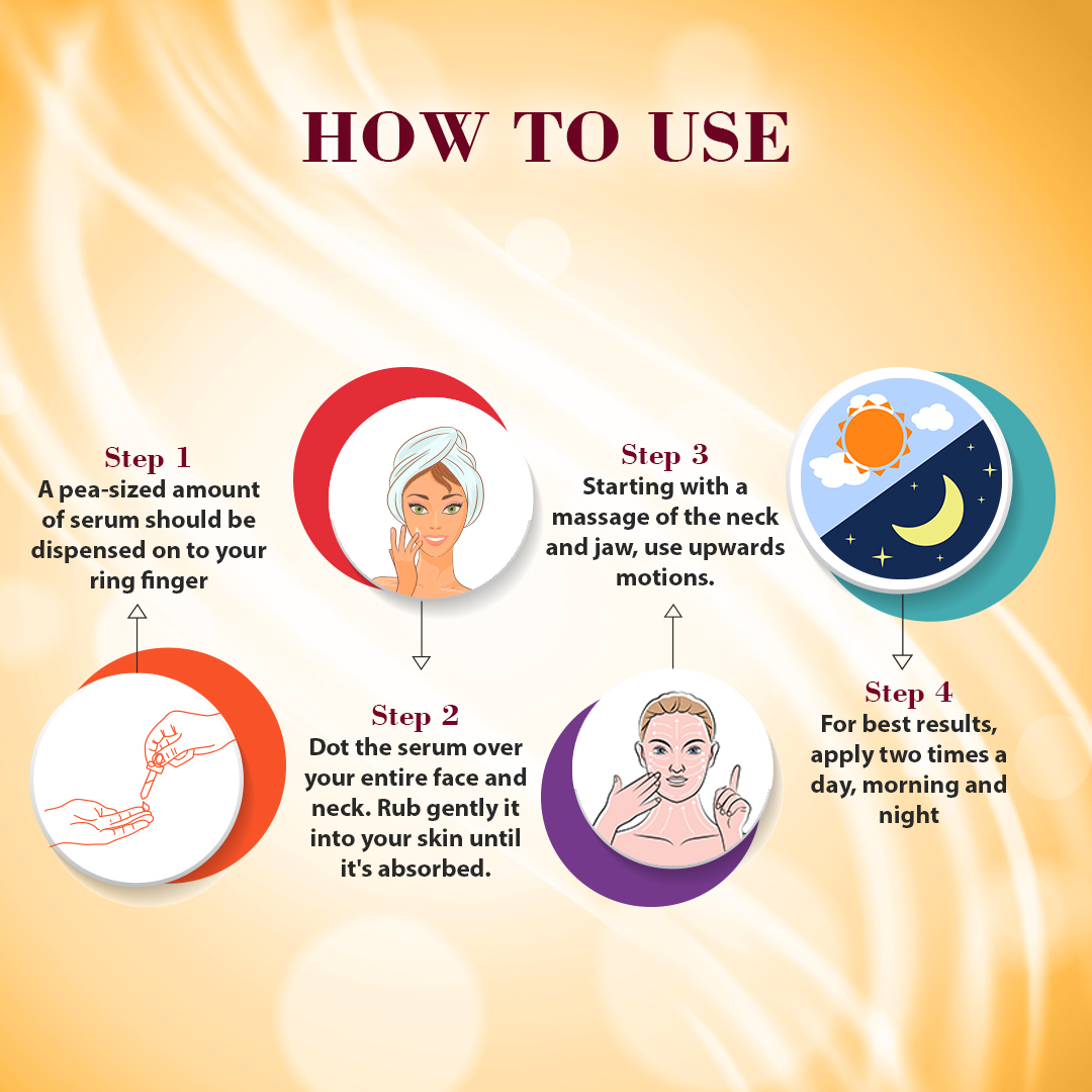 After cleansing your face, pump the serum out on a fingertip. Apply dots all over the face & neck. Gently massage until the completely absorbed. Follow it up with our Oil-Free moisturizer. For best results, apply twice a day.