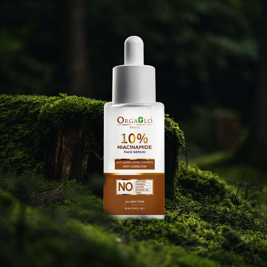 I am OrgaGlo Natural Best Spot Corrector & Anti-Aging 10% Niacinamide face serum with Aloe Vera, Vitamin B5 and Antibacterial property of Zinc.