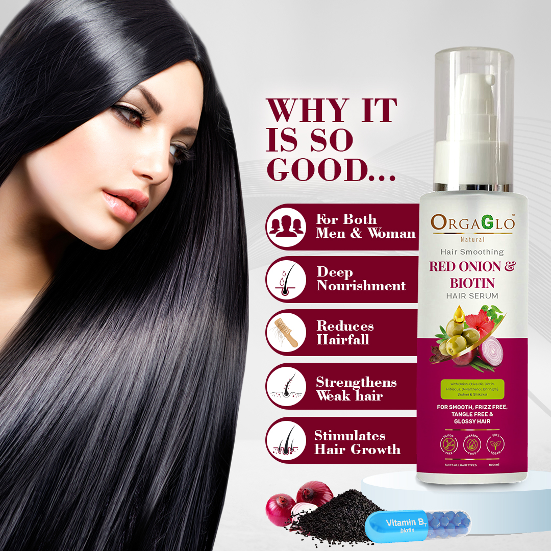 One of the most important is that it will help to protect your hair shaft from breakage. In fact, one of the most important things about OrgaGlo onion hair serum is that it will help you get rid of split ends. It will also add volume to your hair and will give you long, smooth hair. Onion hair serum is known to prevent hair loss. So, all of the great benefits about onion hair serum are well worth the investment.