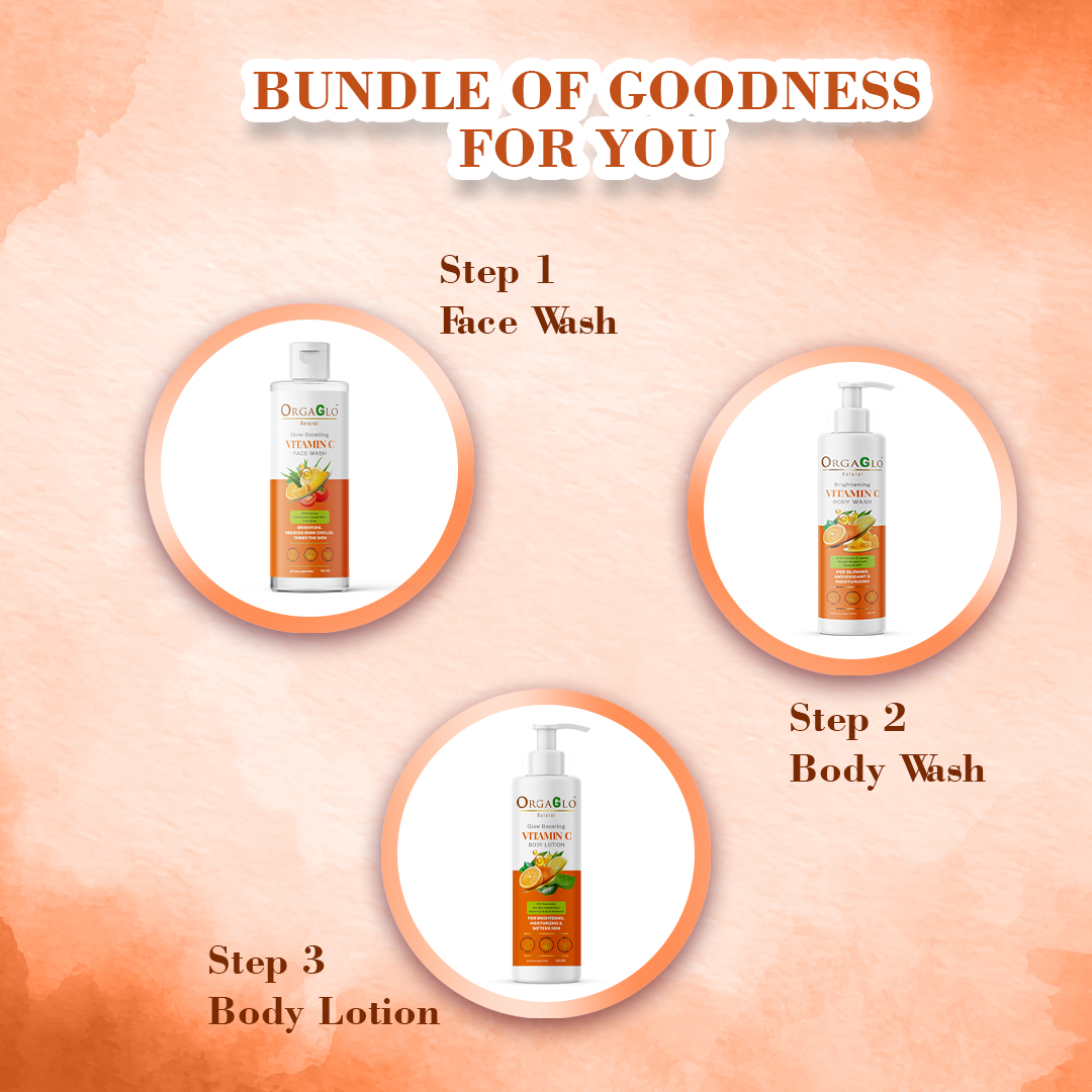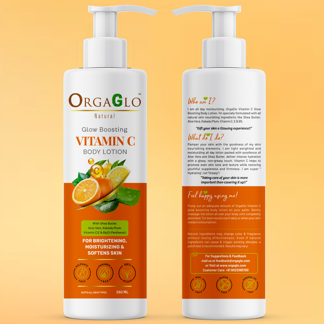 OrgaGlo Glow Boosting Vitamin C body lotion replenishes the skin's moisture barrier, repairs free radical damage, and evens skin tone. It protects your face and full body from free radical damage and provide soft and hydrated feel.