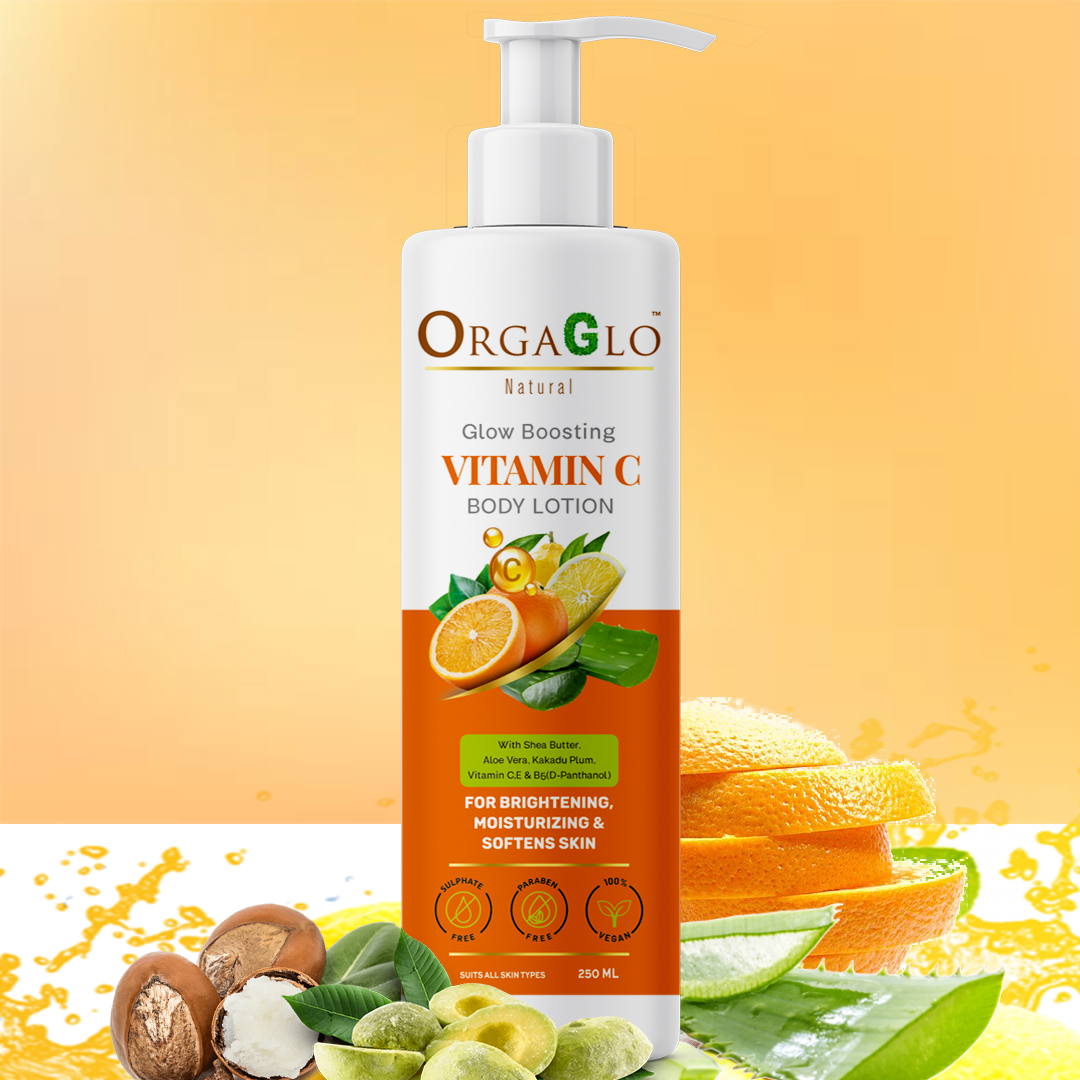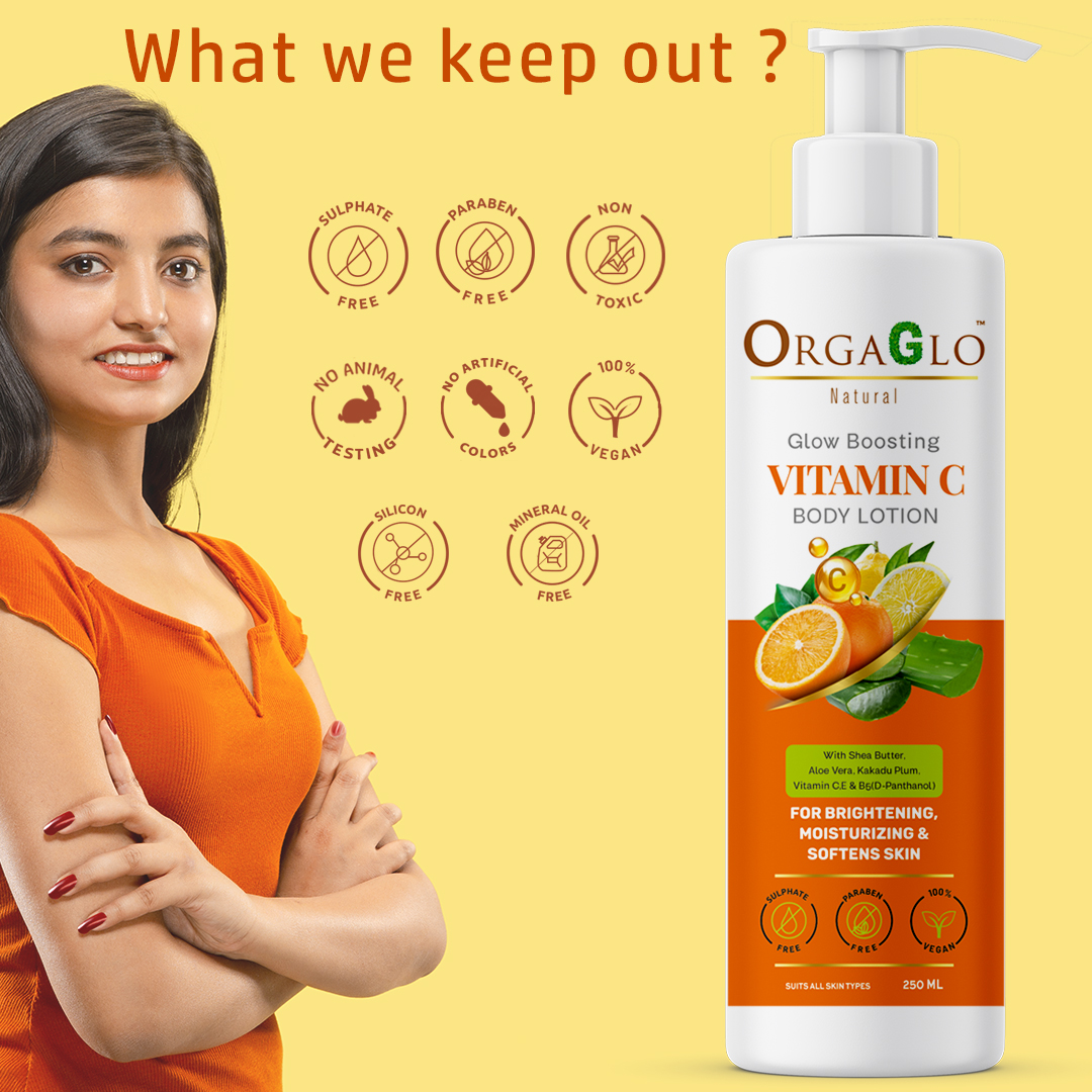 OrgaGlo Vitamin C Body Lotion is a highly-rated body lotion that deeply moisturizes the skin while leaving no stickiness. This no-sticky body lotion is formulated with all natural ingredients such as Kakadu Plum, Lemon, Orange, Shea butter, Aloe Vera to make it the best body lotion.