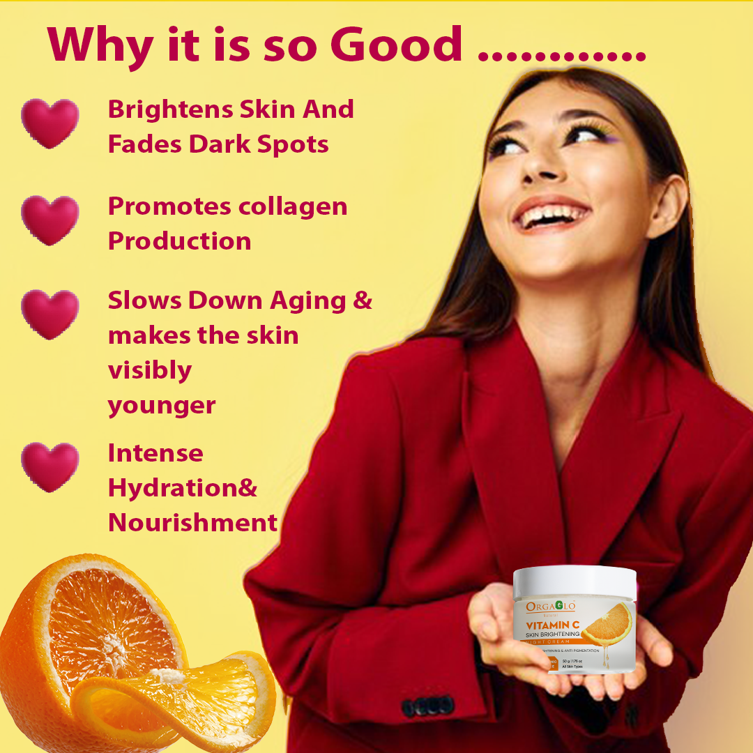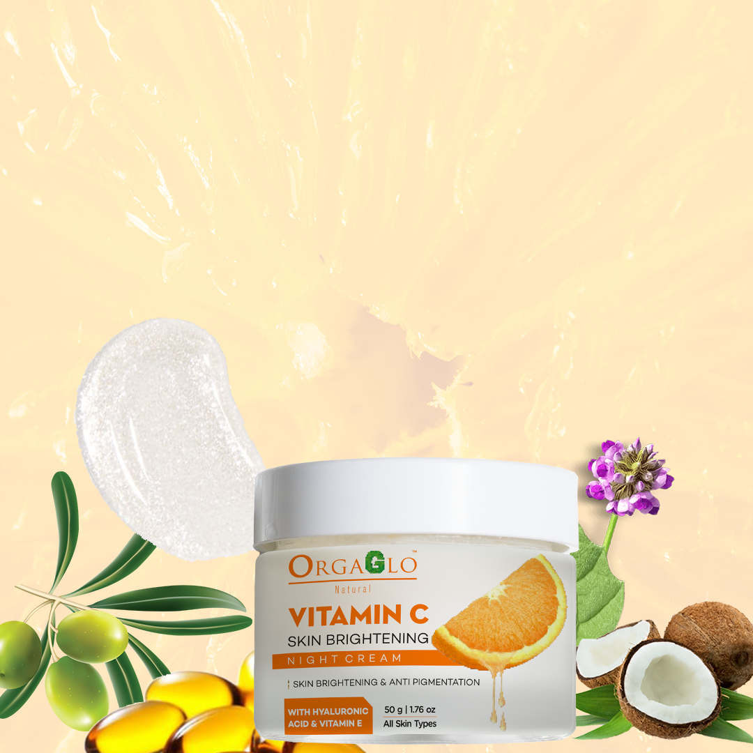 After a long day, your skin needs some downtime to rejuvenate itself. A night-time skincare programme is the most effective method for promoting skin healing. Because while we sleep, our skin heals itself naturally and is better able to absorb other critical nutrients we apply. Ultimately, allows the product to penetrate deep without any outside disturbance. So, set your skin clock to a restore mode with Orgaglo Vitamin C skin brightening night cream. Repair & restore the youthfulness with power dose of vitamin C! Vitamin C is a potent antioxidant that evens out skin tone and slows the visible signs of ageing, and hyaluronic acid keeps skin supple and hydrated. While you rest, the night cream will get to work restoring your skin's natural radiance and elasticity.